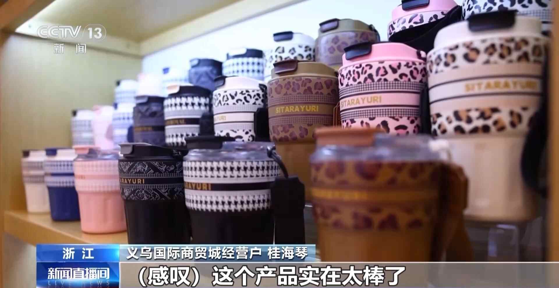 义乌国际商贸城经营户 桂海琴:像印尼他们喜欢喝冰的咖啡,还有喜欢去运动。我们就设计了一个保冷效果长达5天的水杯,所以当这个产品在推广到市场的时候,印尼采购商太惊讶了,感叹这个产品实在太棒了。