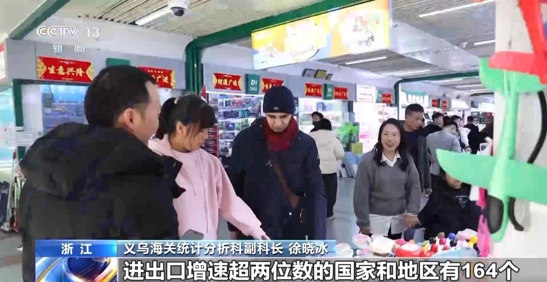 义乌海关统计分析科副科长 徐晓冰:前10个月,与义乌市有进出口贸易的国家和地区达230个,其中,贸易额超亿元的国家和地区有152个;进出口增速超两位数的国家和地区有164个,较去年同期增加32个。