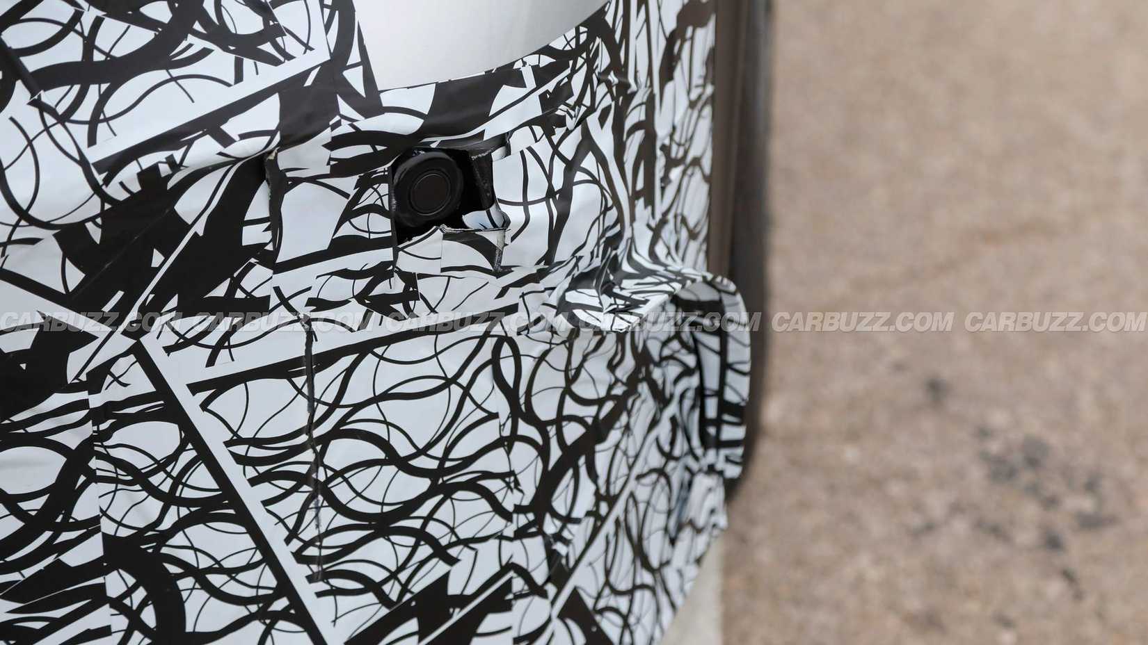 外观方面,GLC53采用了比普通版更为激进的空气动力学套件。车头部分,伪装贴纸下隐约可见更大的下分流器与扩大的进气口,前保险杠两侧也新增了气动装置。车身侧面,侧裙设计比GLC400更为深邃且取消了镀铬饰条,轮拱边缘则明显外凸,这一设计既可能为了容纳更宽的轮胎,也可能具备梳理气流的功能。车尾部分保留了家族式的星形尾灯,并在掀背顶部配备了可调节的主动式空气动力学扰流板,旨在高速行驶时提供额外的下压力与稳定性。