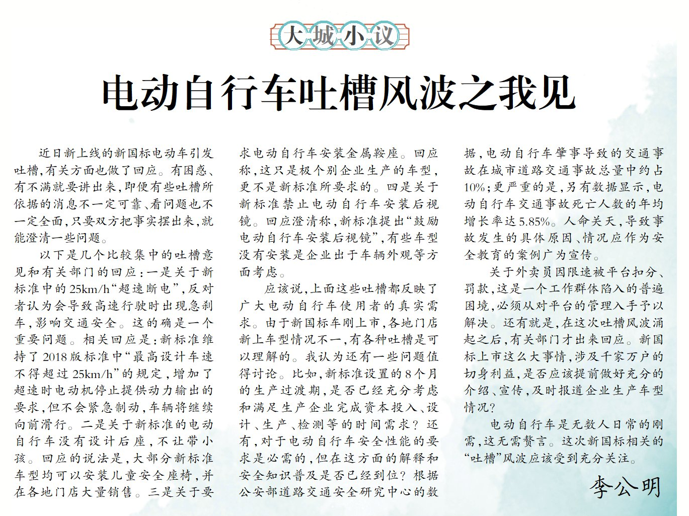 电动自行车是无数人日常的刚需,这无需赘言。这次新国标相关的“吐槽”风波应该受到充分关注。