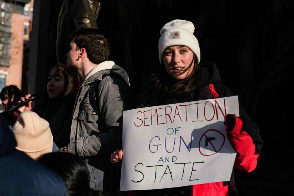 2023年2月24日,在美国马萨诸塞州波士顿,当地学生参加反枪支暴力集会。新华社发(朱子于摄)