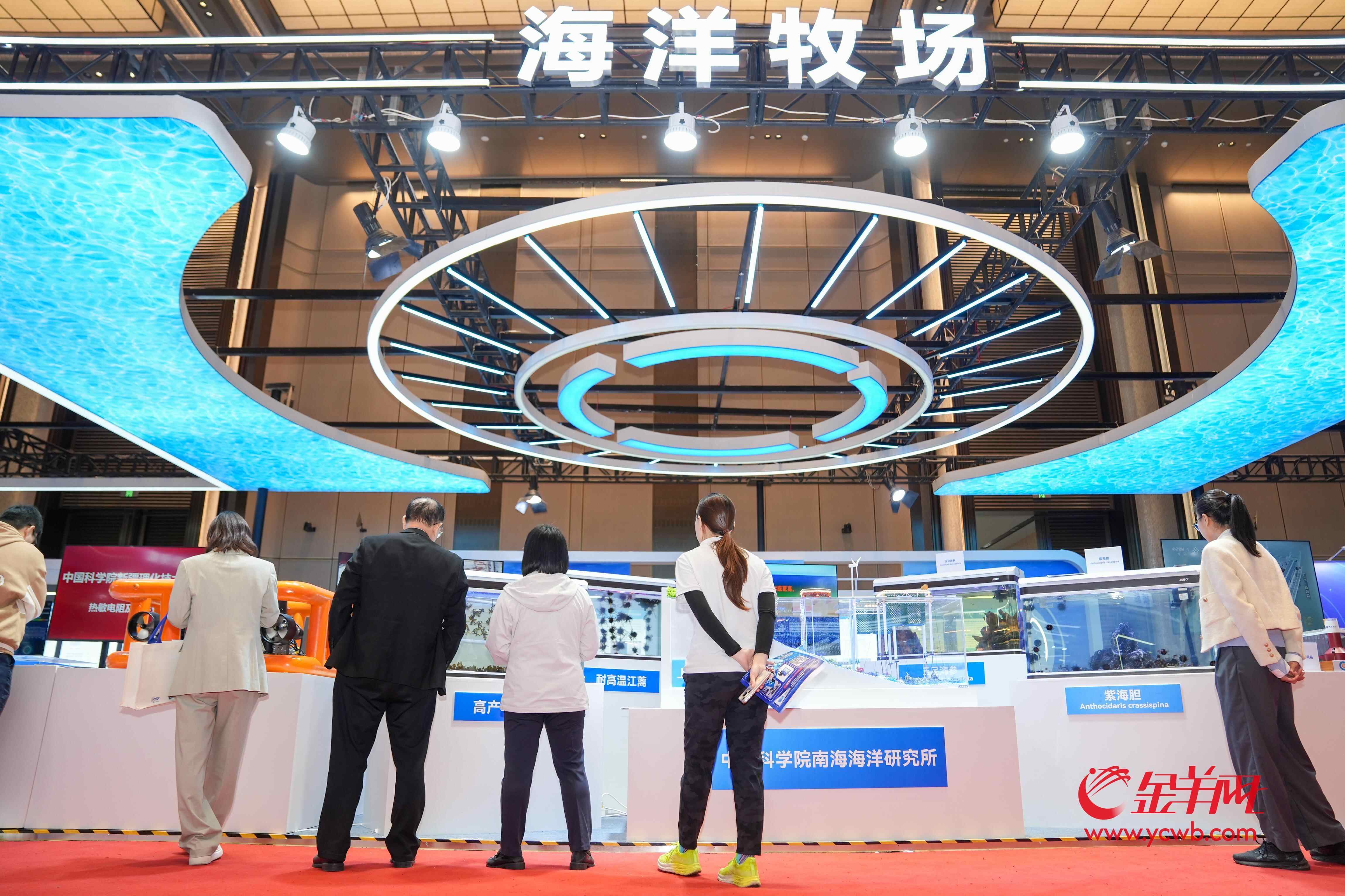 海洋牧场展区,“上升流海洋牧场”模型备受关注。中国科学院南海海洋研究所研究人员介绍,该系统以波浪能驱动为核心,运用人工上升流调控技术,构建了“鱼-参-贝-藻”立体生态养殖模式。展台上,玉足海参、紫海胆与马尾藻等在模拟环境中协同生长,配合数字孪生运维界面,直观演示了其在提升渔业效益与增强海洋碳汇方面的双重价值。