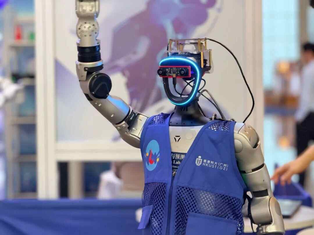 据介绍,港科广人形机器人1号和2号均是首次亮相,港科广人形机器人1号具备走路、跑步、搬运重物等能力,港科广人形机器人2号则可用于复杂地形行动、野外巡检等。