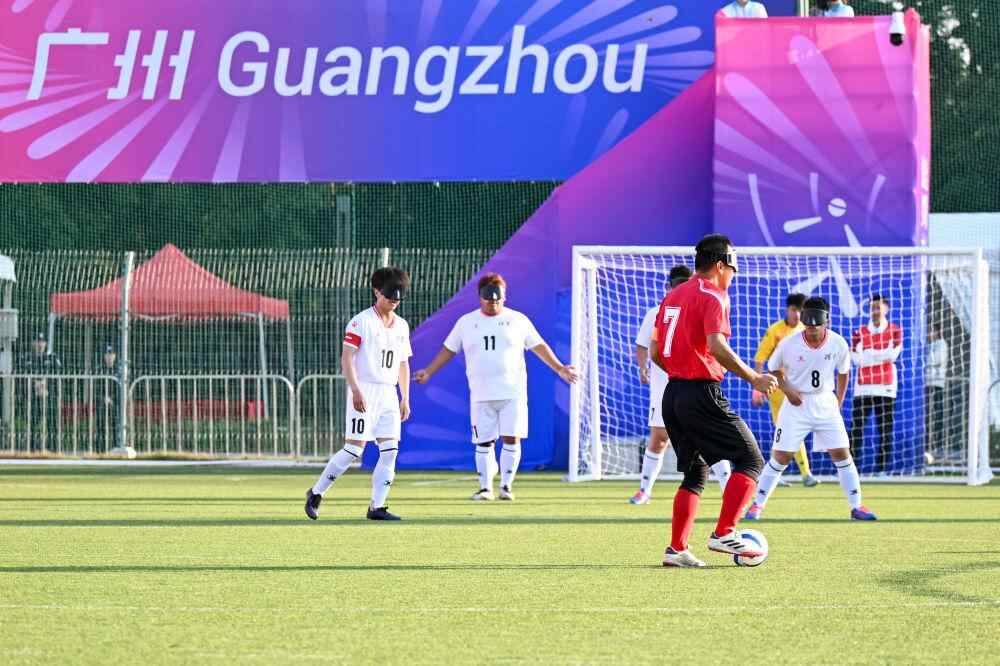 12月8日,在全国第十二届残疾人运动会暨第九届特殊奥林匹克运动会盲人足球项目男子组小组赛中,福建队4:0战胜河南队。新华社记者 陈浩明 摄