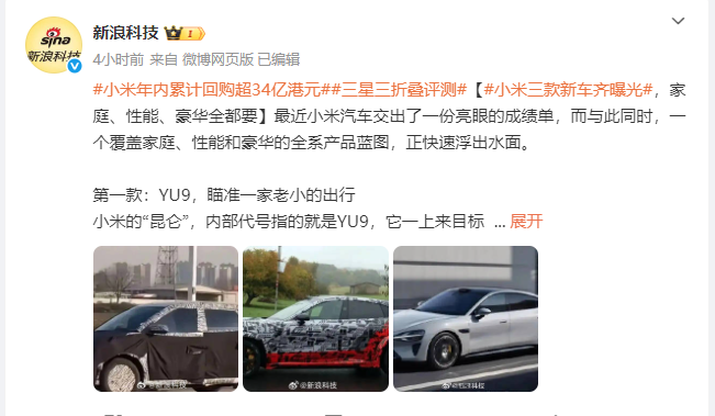 新浪科技12月9日消息,小米汽车近日交出亮眼成绩单,同时曝光了覆盖家庭、性能和豪华市场的全系产品蓝图。首款车型YU9,内部代号“昆仑”,定位为家庭出行的大型SUV,车长超5.2米,提供六座或七座布局,采用增程系统,适合长途出行且无续航焦虑。雷军亲自带队在新疆帕米尔高原测试该车型,显示出小米对其的重视,预计不久将正式上市。