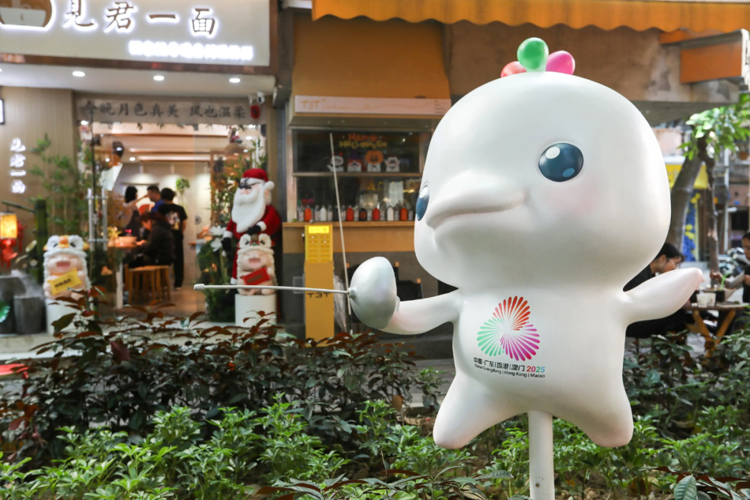 木棉花装置上的各式大湾鸡与广州塔同框,城市地标与可爱吉祥物碰撞出满满创意。
