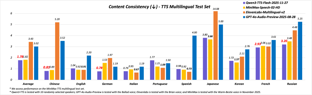 Qwen3-TTS在多语种多方言能力上也有所增强,支持包括中文、英文、德语在内的10大主流语言,并在MiniMaxTTSmultilingualtestset上的平均词错误率(WER)优于多个竞争对手。此外,该模型还支持多种方言的生成,如普通话、闽南语、吴语等,能够还原地方口音特色与语言神韵。
