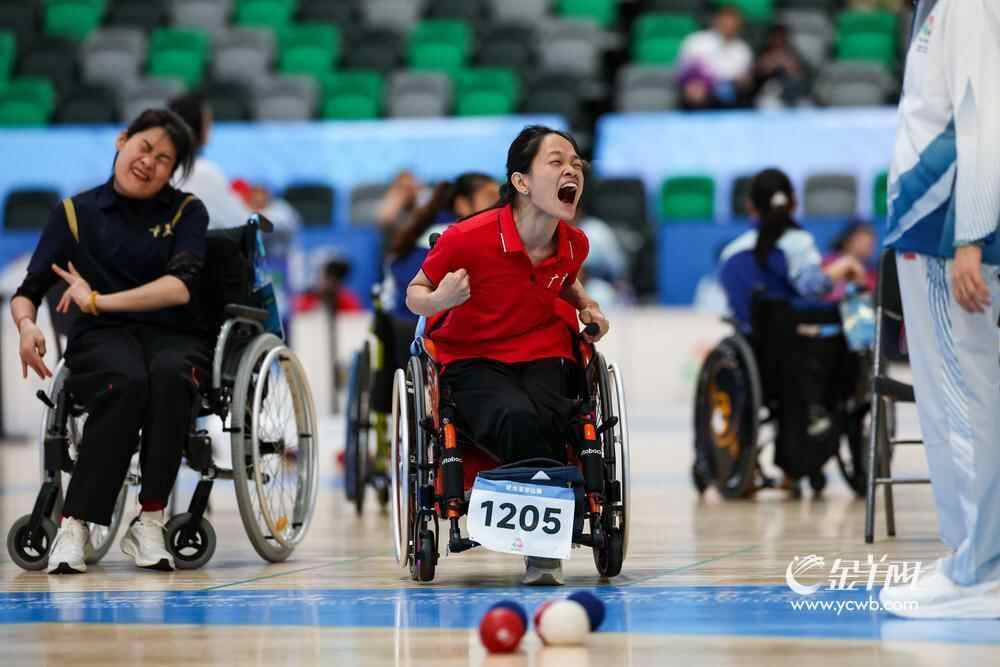 这是郑远森和广越楚第一次在全国大赛中并肩作战。36岁的郑远森是赛场老将,已经连续参加过4届残奥会,曾夺得杭州亚残运会冠军;26岁的广越楚接触硬地滚球也已9年了。