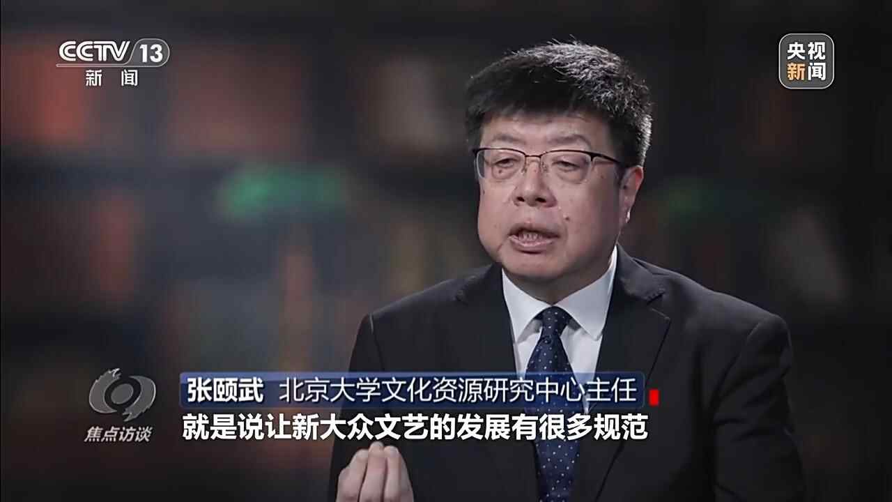 张颐武:一方面我们需要明底线,让新大众文艺的发展有规范,比如新的业态出现了,像微短剧出现了,管理部门就会有一系列规范出来;另一方面还要有引导平台算法需要向善,流量需要理性,提供一个健康良性的互联网环境,让新大众文艺能够健康发展。