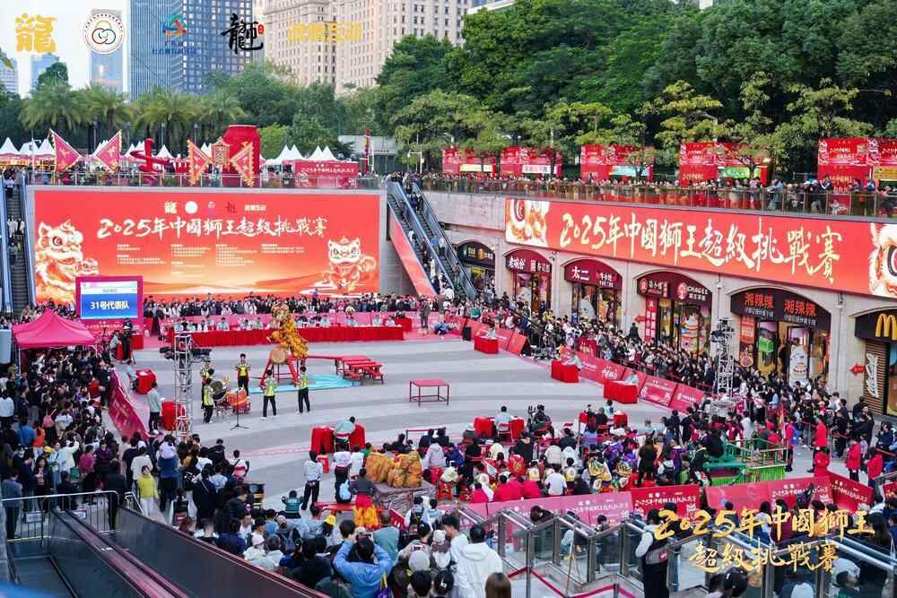 当天,花城广场南区下沉广场内,2025中国狮王超级挑战赛传统南狮比赛正酣。来自全国18个省份、港澳地区以及广州11区的32支顶尖醒狮队伍集结于此,参加2025中国狮王超级挑战赛传统南狮项目角逐。