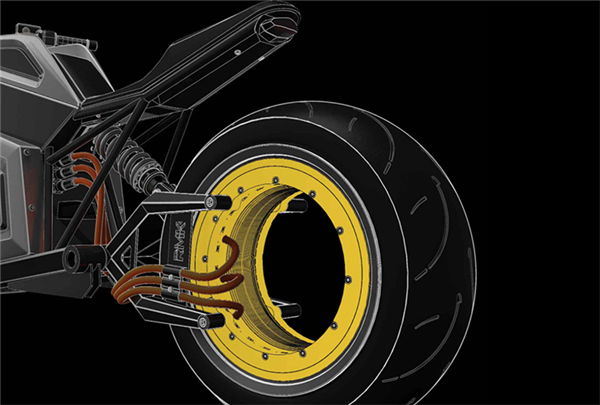 Verge TSPro的无轮毂电机,即轮辋集成式电动机,以其独特的甜甜圈形状和高传动效率引人注目。这种电机设计省去了传统摩托车的链条、皮带和齿轮等传动部件,直接将电机嵌入轮圈中,提升了传动效率。2026款TSPro使用的是甜甜圈电机2.0版本,相较于1.0版本,它更轻、散热更好,且能承受30分钟的峰值功率输出而不衰减。