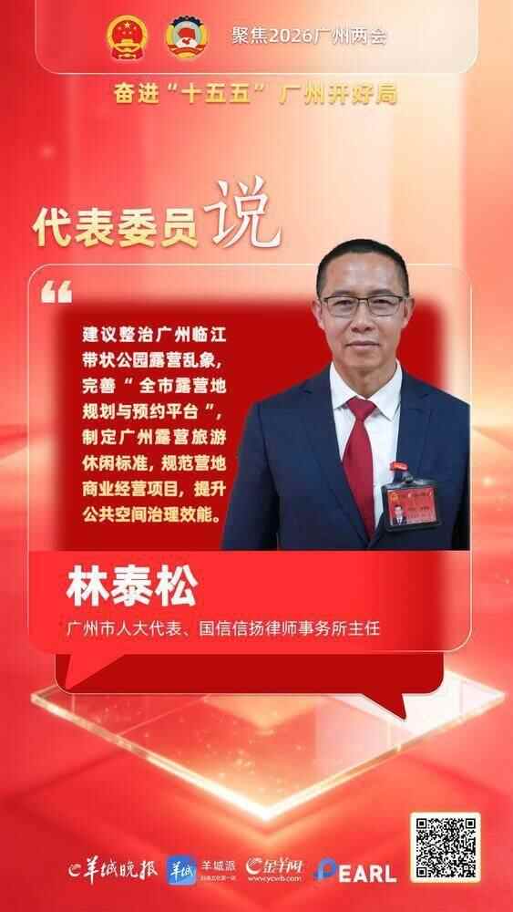 城市该如何接住年轻人的帐篷?如何让“城市露营热” 更安全规范?今年广州两会,广州市人大代表、国信信扬律师事务所主任林泰松就此提出建议:实施专项整治行动,遏制露营乱象,完善“全市露营地规划与预约平台”,制定广州露营旅游休闲标准,规范营地商业经营项目。