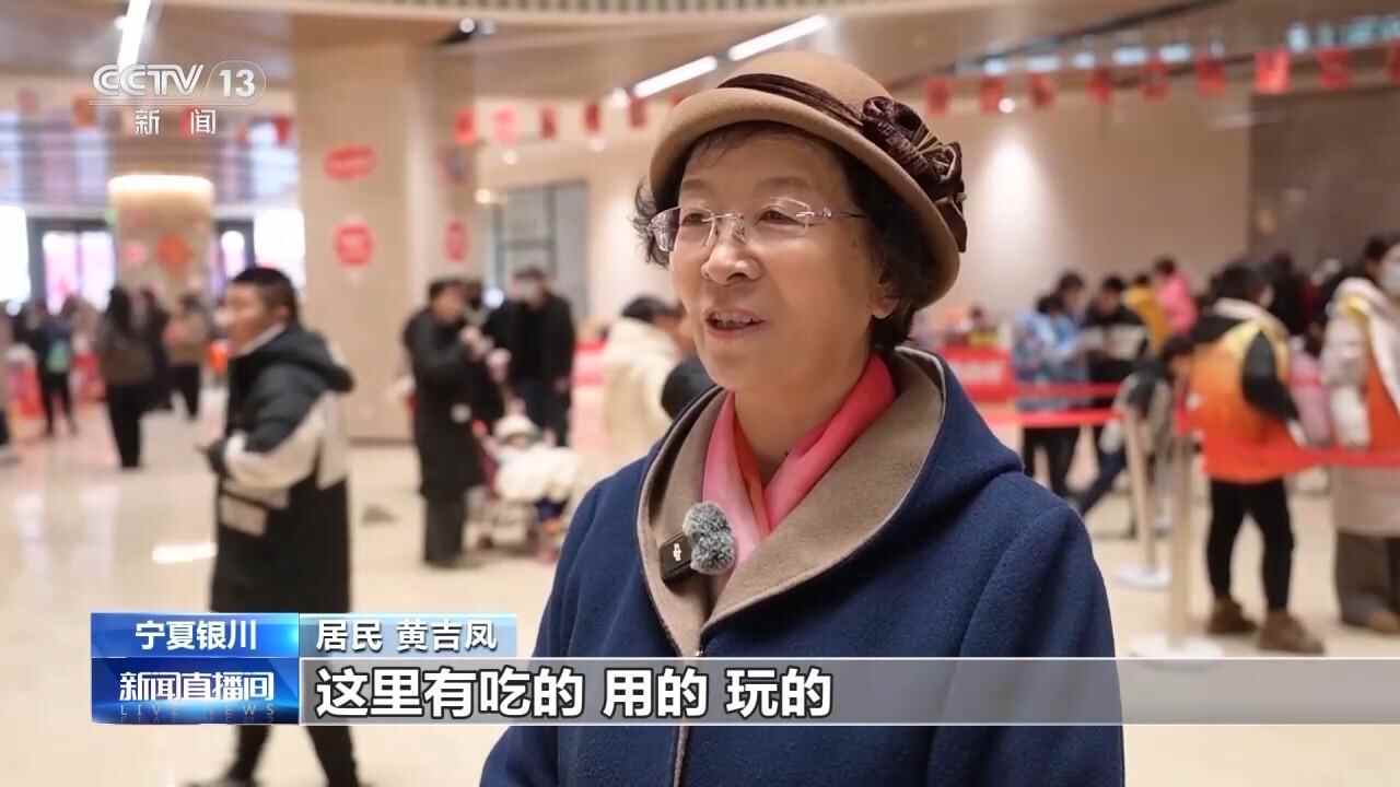居民 黄吉凤:非常热闹,这里有吃的、用的、玩的,孩子们做游戏,还有春联,带孩子一起玩,小孙子玩得很开心,已经感受到过年的年味了。