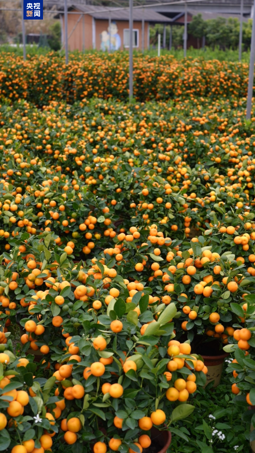 世界上每十盆年桔,就有八盆产自广东顺德陈村。每年农历八月十五前后,年桔开始接受预订,腊月初一到初十是集中出货期,腊月十五起,直接供应各地花市。桔园里,梁钜东正为一盆精品金桔做最后点缀:树顶放上一颗最大的金桔,称作“吉星高照”;周围八颗略小的果实环绕,寓意“八方来财”;下方枝叶间点缀的小果,则象征“遍地黄金”。