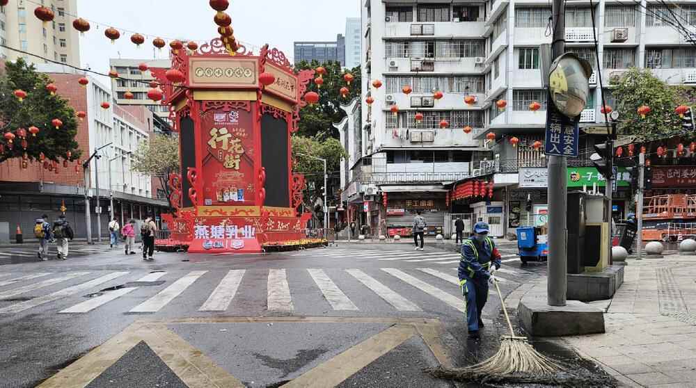 在越秀区西湖花市,越秀区城管部门每日调配27台专业设备,对西湖路、教育路实施精细冲洗。在黄埔区,当地环美中心提前介入,累计完成花市区域保洁面积11万平方米,并布设22座移动公厕,为市民“行花街”营造洁净环境。