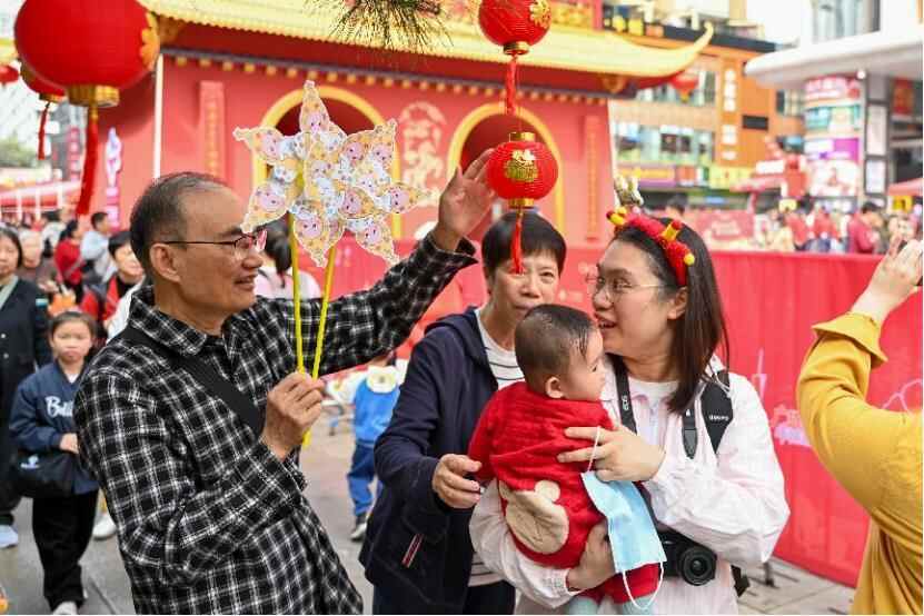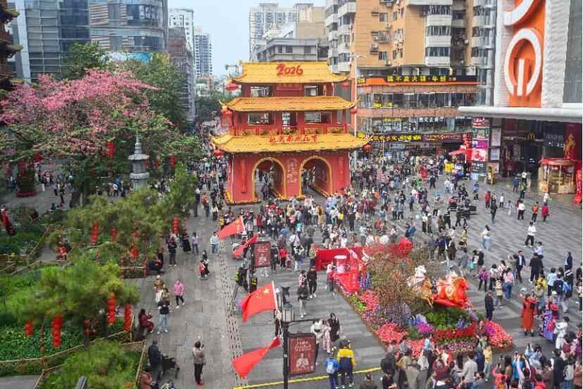 2026年2月13日,已有百年历史的广州西湖花市开市迎客。图为花市开市民俗巡游吸引市民观赏。中新社记者 陈骥旻 摄