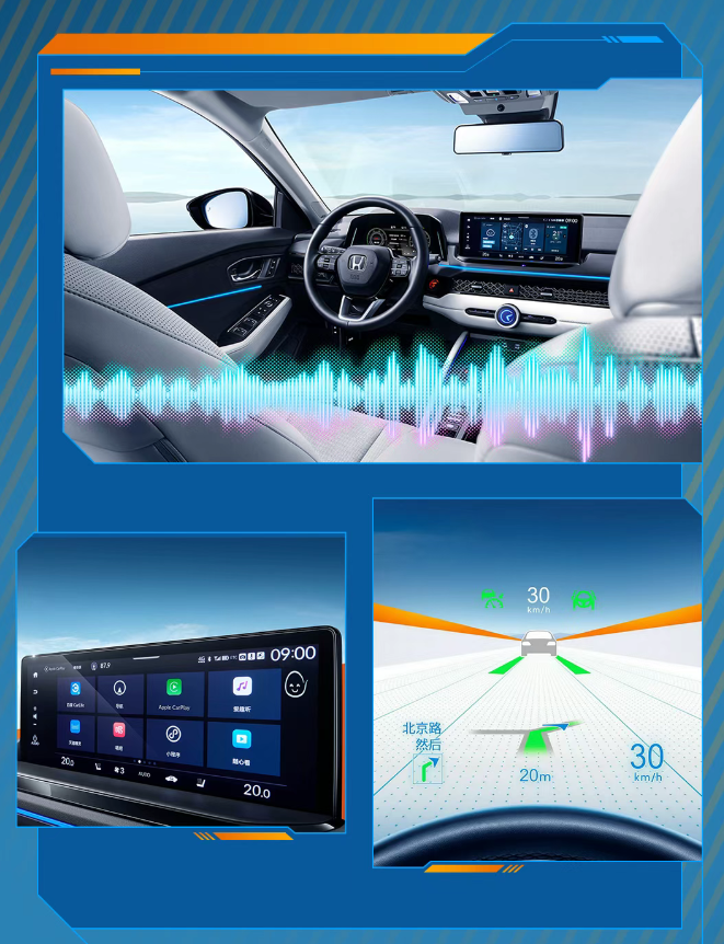 在车内配置方面,雅阁e:PHEV提供了11.5英寸HUD抬头显示和12.3英寸彩色智能互联屏系统,辅以BOSE豪华音响系统(12扬声器),并配备多色智能氛围灯,为驾驶者和乘客提供舒适的驾驶环境。安全配置上,全车配置了10个安全气囊,并采用HondaArchitecture新架构高刚性车体,确保乘员安全。