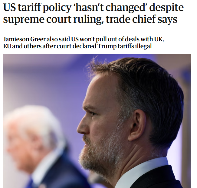 美国联邦最高法院以6:3裁决特朗普的政府违宪,违反了只有国会才能够加征关税,没有国会的授权不能加税的宪法原则,而特朗普政府依据所谓的IEEPA法案,以行政令的方式加税本身就是越权,所以这实际上是美国行政权、司法权和立法权之争。美国贸易部门也“懵”了,到底按哪个征税?按哪个执行?