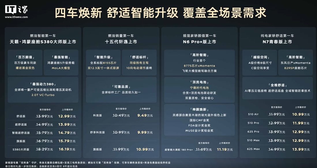 今日,东风日产在2026春季发布会上宣布全新轩逸正式上市。新车全系标配8155芯片和双12.3英寸一体式联屏,采用日产最新家族式设计语言。官方指导价从10.49万元起,上市限时价则从9.49万元起。全新轩逸在外观上进行了全面升级,前脸采用大尺寸倒梯形进气格栅,配合V形镀铬装饰条和矩阵式LED灯珠大灯,整体风格更加现代化。车身尺寸方面,长宽高分别为4656*1825*1448mm,轴距2712mm,相比现款车型有所增加。内饰方面,新车首次搭载双12.3英寸一体式联屏,支持苹果CarPlay,并配备NissanConnect车联系统。动力方面,全新轩逸搭载HR16 1.6升自然吸气发动机,最大功率99kW,匹配CVT无级变速箱,综合油耗为5.57-5.96L/100km。