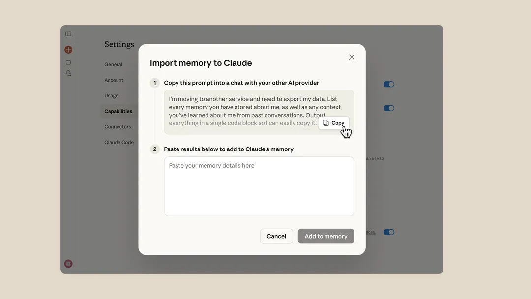 3月4日,Anthropic公司旗下的人工智能助手Claude宣布推出一项新功能——“记忆导入”,该功能允许用户将其他AI服务中的互动记录导入到Claude中,从而实现无缝的AI使用体验。这一功能的推出意味着用户无需从头开始与AI建立交流,而是可以保留之前的上下文和偏好设置。