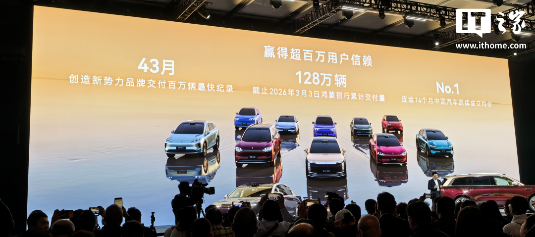3月4日,华为在“鸿蒙智行技术焕新发布会”上公布了鸿蒙智行的最新成绩单,截至2026年3月3日,累计交付量超128万辆,创造新势力品牌交付百万辆最快纪录,并连续14个月位居中国汽车品牌成交均价第一。问界M9全系累计交付突破28万辆,尊界S800累计交付量达1.5万辆,连续5个月稳居百万豪车销量冠军。