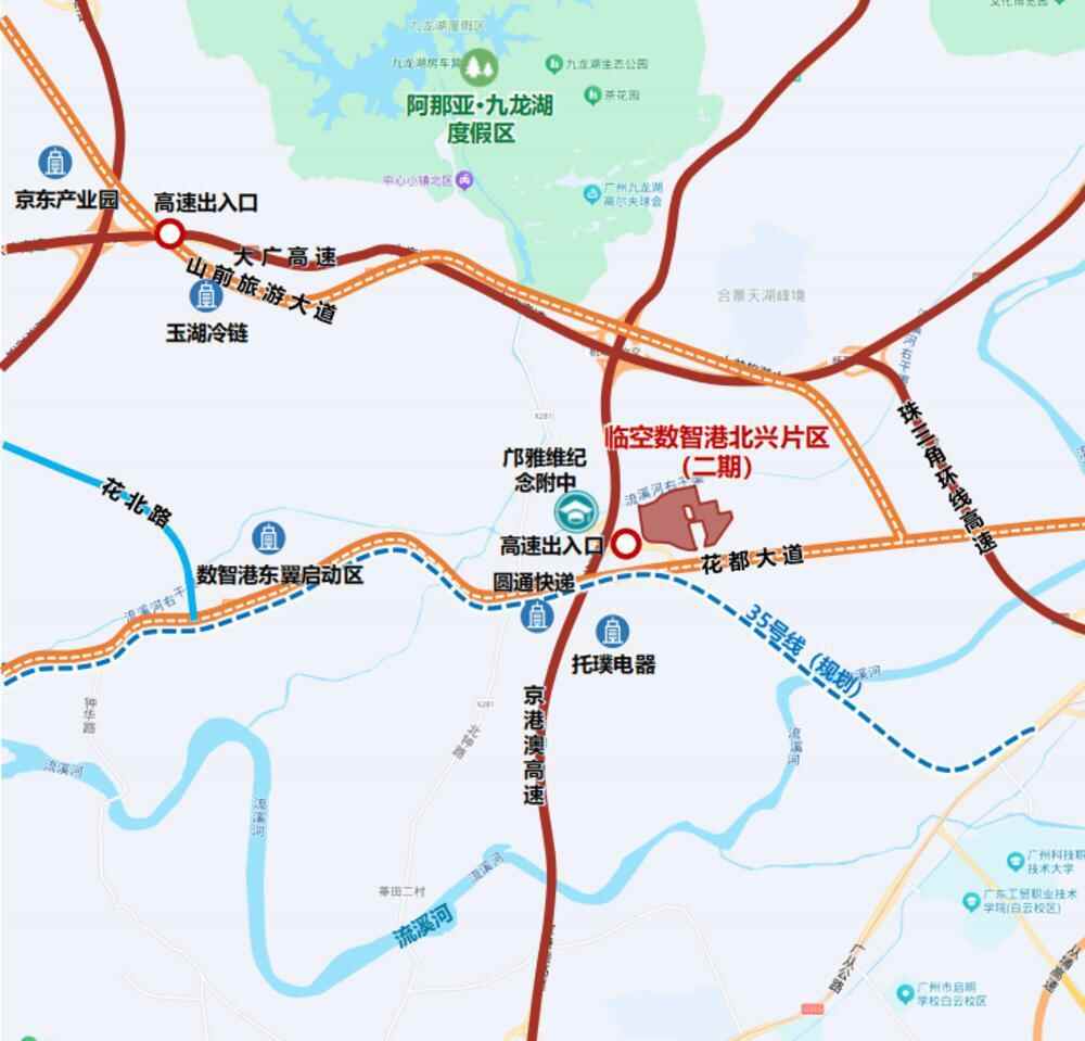 位于花都东部临空数智港,花都大道北侧,紧邻京港澳高速出入口,物流运输便捷,通达性强;主干道,高速路网密集,交通区位优越。周边产业集聚,配套完善。