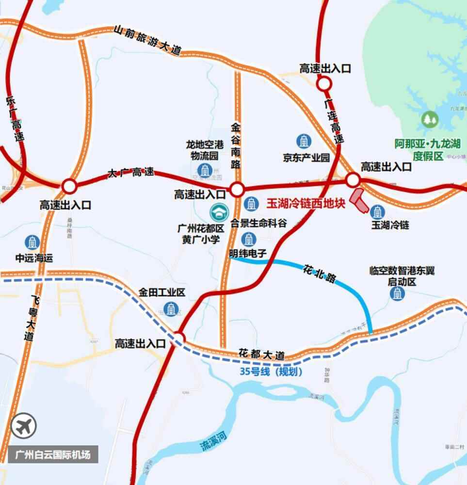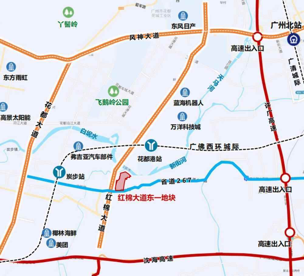 ➤交通出行便利:西临红棉大道,北临花都港,南侧靠近沈海高速、广佛江珠高速,东侧靠近许广高速,客货运交通便利。