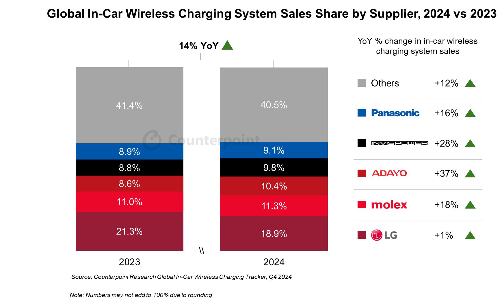 4月11日,市场调查机构CounterPoint Research发布报告称,2024年全球车载无线充电系统销量同比增长14%,普及率首次突破50%。车载无线充电系统正逐渐从可选配置成为标配,尤其在千禧一代和Z世代中越来越受欢迎。美国以87%的普及率领跑全球,韩国及北美其他市场紧随其后。中国市场普及率低于全球平均水平,但小米、领克和问界等中国电动车品牌正在推动技术革新,推出自主充电协议,功率已达50W以上。自2024年9月1日起,中国新规允许最大功率提升至80W,加速了高功率充电的普及。
