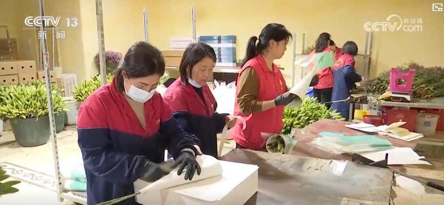 在云南昆明这个物流基地,工人们正在加紧对一捆捆即将发货的鲜花做最后打包,这750箱鲜花将在冷库预冷到2摄氏度左右后启程前往俄罗斯。