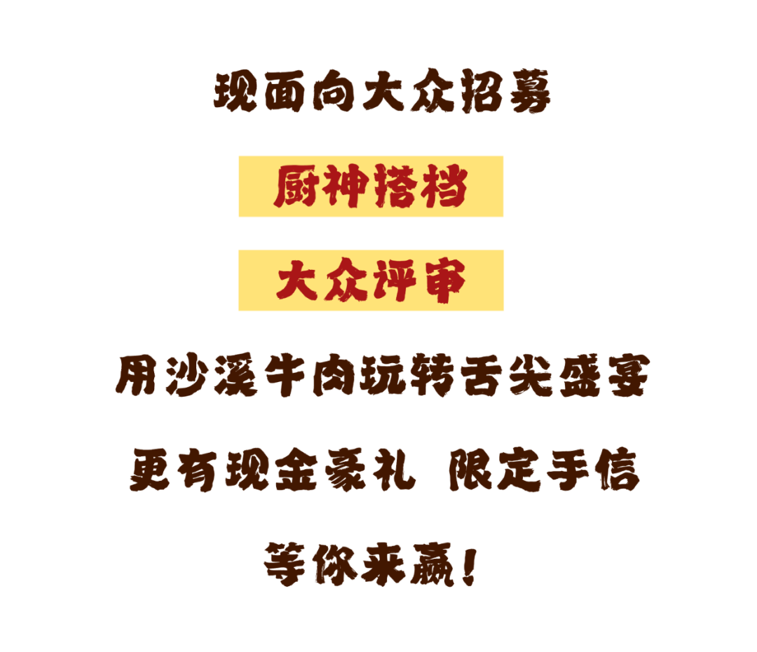 参赛队伍在45分钟内通过炒、炸、蒸、烹、烧等技能,对现指定食材(沙溪牛肉)进行创作,形成最终参赛作品。