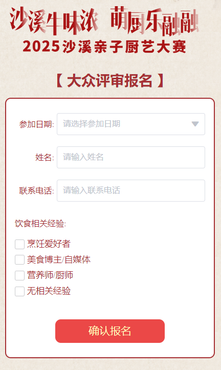 大众评审组:点击【大众评审报名】,填写线上报名表,点击【确认报名】即可。
