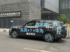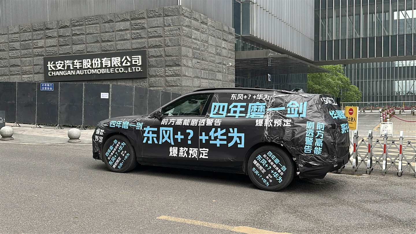 4月7日,东风、华为等合作推出的首款SUV伪装车照片曝光。新车在东风、长安、华为基地现身,伪装车衣上印有多条宣传标语,如“领先不止一代”“华为最强智驾”“SUV不二之选”“四年磨一剑”“东风+?+华为”“爆款预定”等。新车整体拥有较大尺寸,定位预计为中型/中大型SUV,车顶激光雷达暗示新车有望搭载华为ADS 4.0智驾系统。