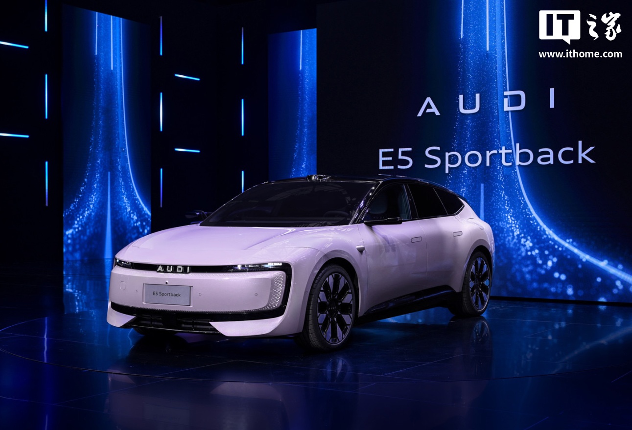 2025年上海车展上,奥迪与上汽集团合作推出的全新品牌AUDI首款车型AUDI E5 Sportback正式亮相。该车型是一款B级纯电动Sportback车型,采用环形LED灯带和可发光字母标识,座舱配备59英寸4K贯穿式超清广域屏,搭载高通8295芯片,支持多模态交互。