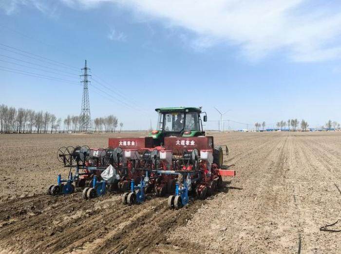 在吉林省松原市乾安县大遐畜牧场,播种机在黑土地上播种(2025年4月23日摄)。新华社记者孙鹏程摄